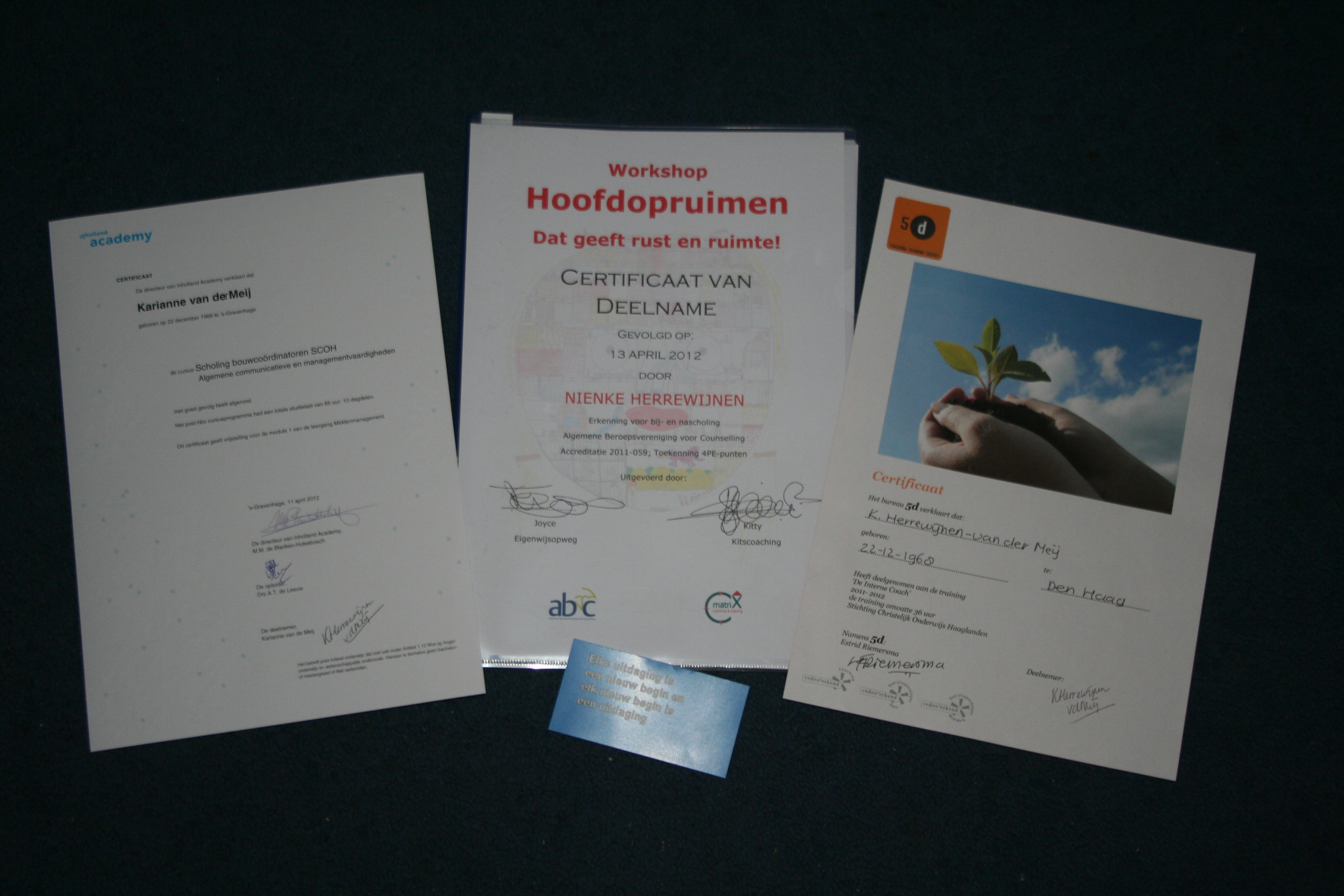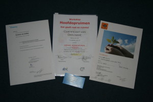 Trots ben ik op wat ik dit jaar bereikt heb: Een scholing voor bouwcoördinator en een studie als ‘Coach in het onderwijs’. Met als ‘uitstapje’ een workshop ‘Hoofdopruimen’.