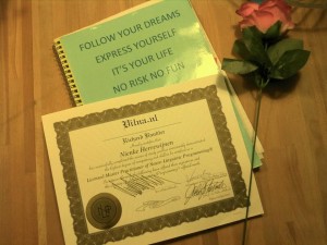 In januari van dit jaar heb ik me weer 9 dagen verdiept in NLP. Dat staat voor Neuro Linguïstisch Programmeren. In 2011 volgde ik met goed gevolg al de Practioner NLP. Dat smaakte naar meer: Wat ben ik trots, dat ik mijn diploma als Master Practioner NLP vandaag heb mogen ontvangen!
