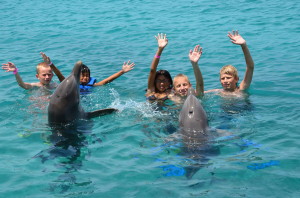 In 2011 zijn wij vijven (mijn mannen en ik) ook de Atlantische Oceaan overgestoken en hebben we rondgekeken op ‘hun’ eiland en natuurlijk heb ik ook haar basisschool bezocht. Wel jammer, dat dat in de zomervakantie was, dus een echt idee van het onderwijs kreeg ik niet. Wel was dit de vakantie van ons leven voor ons en vooral voor de 5 kinderen samen. Op Curaçao verbleven we met z’n negenen in een huisje en maakten ook dat eiland onveilig. Duiken, snorkelen, spelletjes, zwemmen en op het hele eiland rondrijden en als klap op de vuurpijl gingen we daar ook zwemmen met dolfijnen.