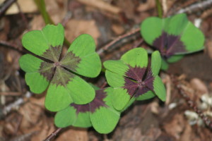 De tuin is klein, maar vol met groen. Ik kijk naar de bloemetjes op de tafel, die viooltjes zijn zo grappig wit met blauw. Ik denk dat ik zelfs al een puntje zie van mijn klavertje vier; ik hoop het dat hij weer opkomt. De merel op het dak maakt een geruststellend geluid.