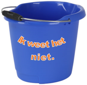 Deze emmer kun je ook creëren in je eigen hoofd. Doe je ogen dicht en maak ruimte in je hoofd voor een weggooiplek, of zet een emmer in die ruimte. Jij bent immers de baas over je eigen hoofd. Dan heb je die ‘Ik-weet-het-niet-emmer’ de hele dag bij je.